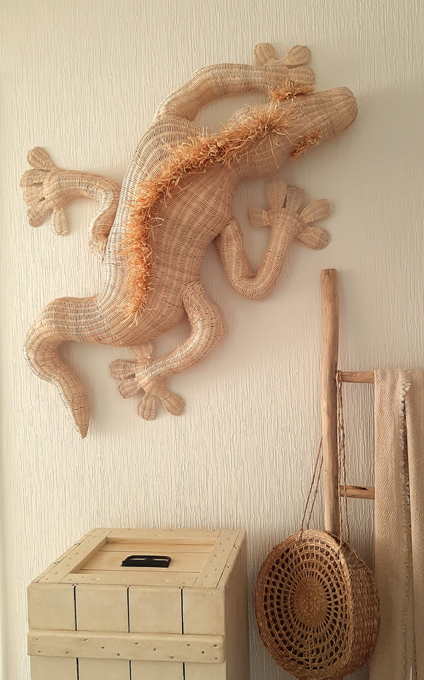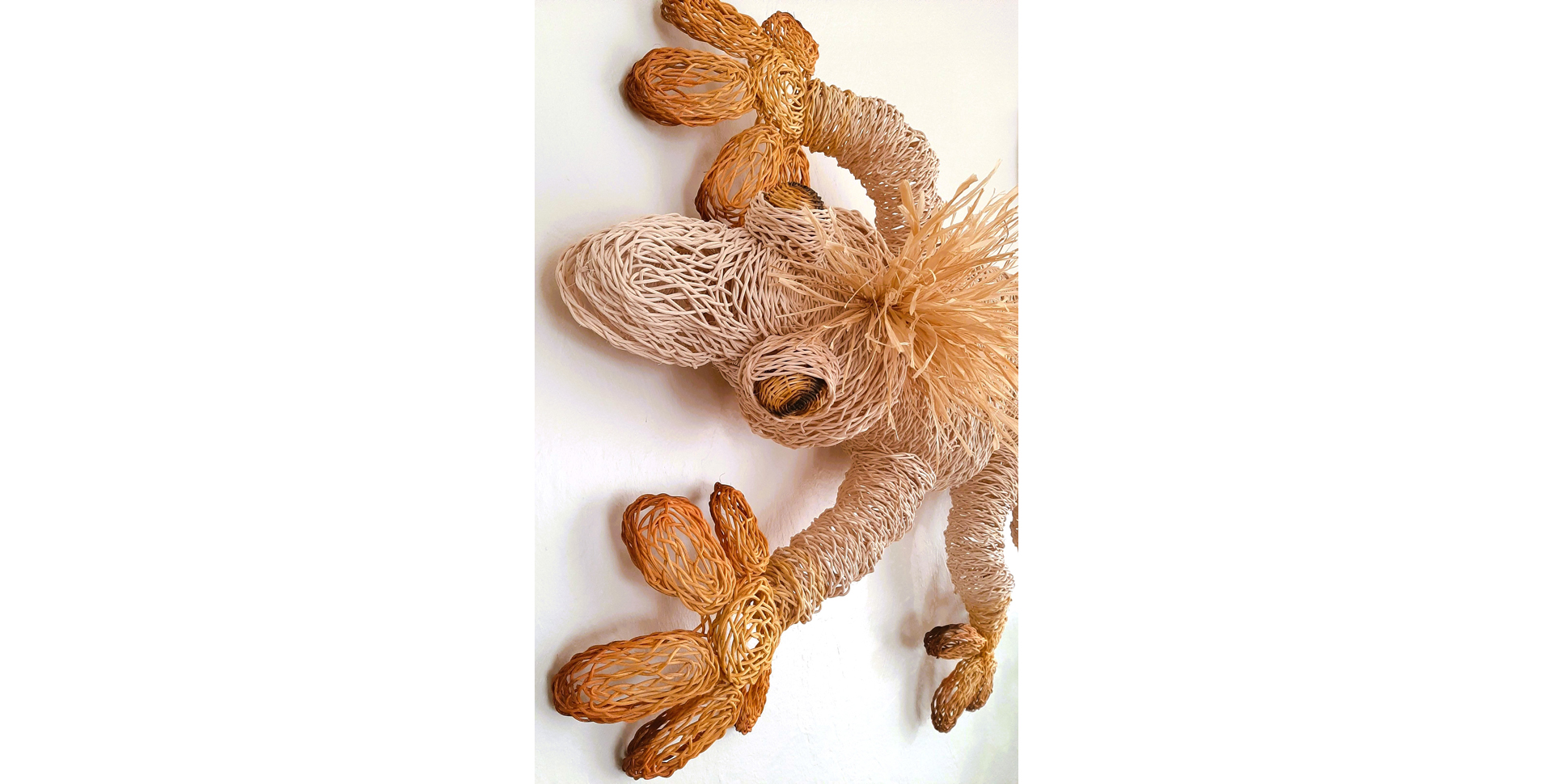 Wat haar kunst bijzonder maakt, is de techniek van het vlechten. Door het zorgvuldig in elkaar weven ontstaat er structuur, diepte en stevigheid.